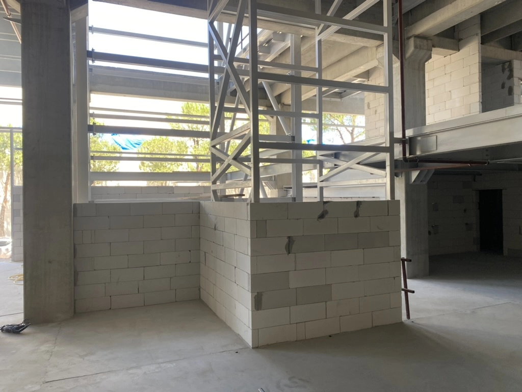 Menemen Serbest Bölge'de yürütülen bu projede 10 gün gibi kısa bir sürede 1000 m2 gazbeton duvar ve çelik hatıl uygulaması gerçekleştirilerek saha programı kontrollü biçimde ilerletildi.