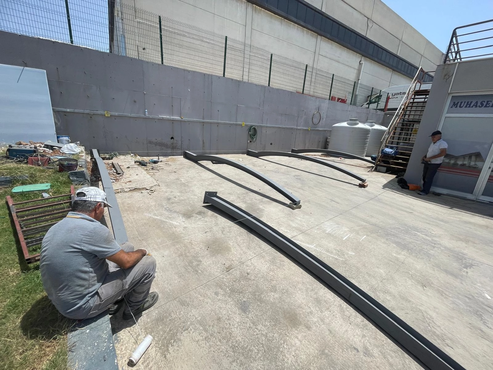 Torbalı'da yer alan Hassen Petrol sahasında geliştirilen bu uygulamada, otopark ve ofis girişi için tonoz formunda sundurma çözümü tasarlanıp sahaya uygulandı.