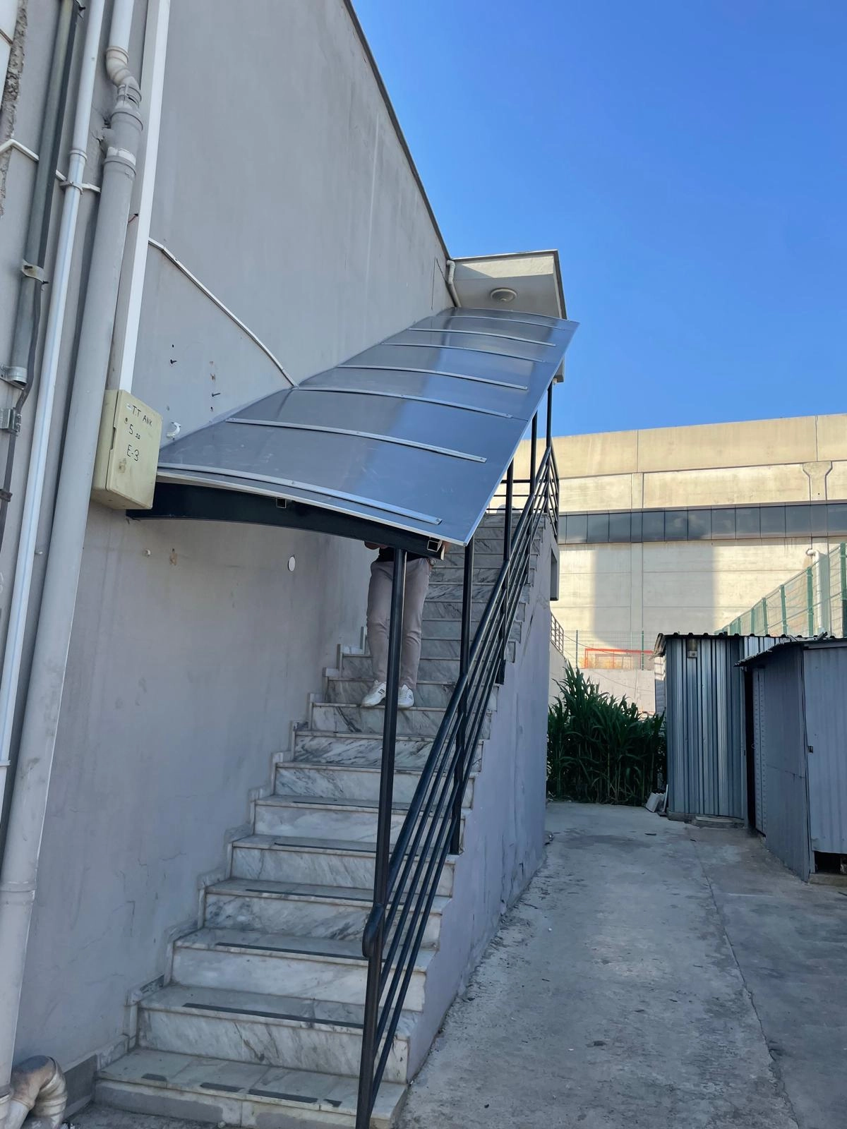 Projede hem dış etkenlere karşı koruma ihtiyacı hem de giriş alanının daha tanımlı ve güçlü görünmesi birlikte değerlendirildi.